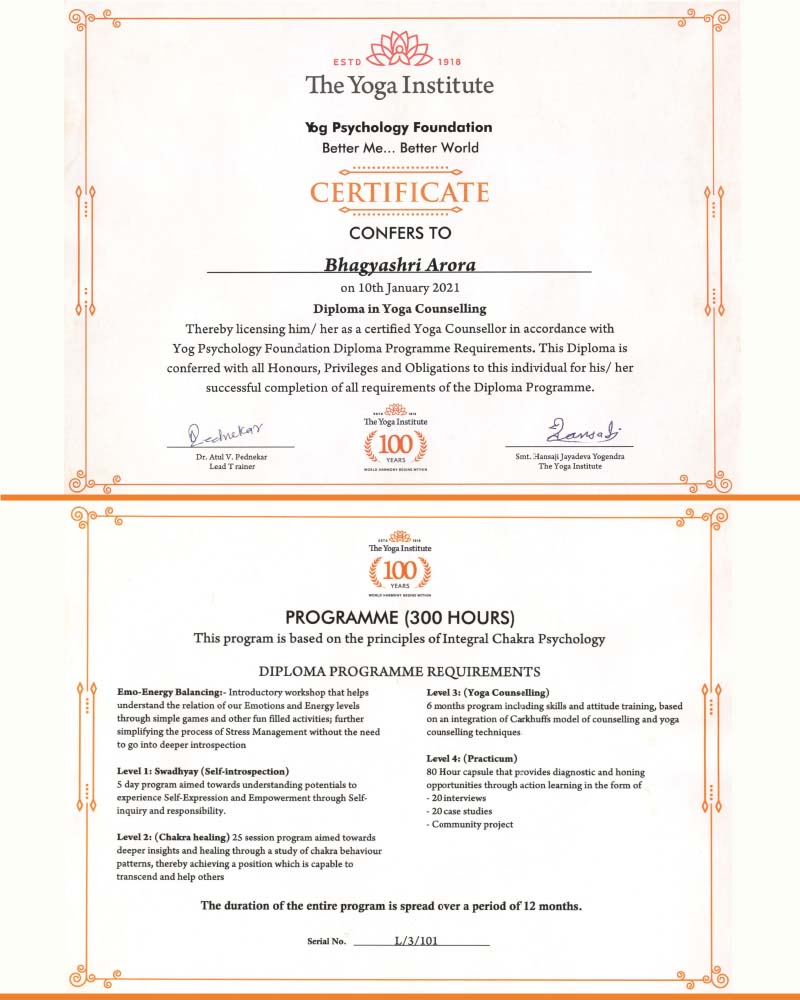 Ms Bhagyashhri Arora is a certified yoga counsellor and wellness coach.