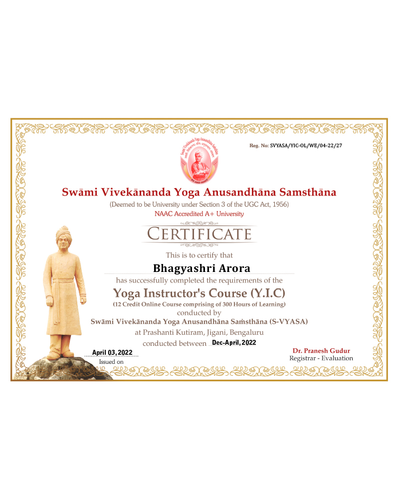 - Yogic Concepts & Techniques To Children And Healthy Adults (200 Hours)